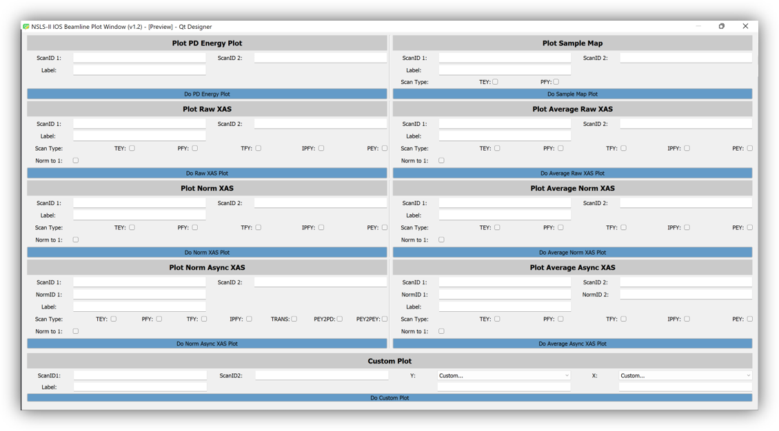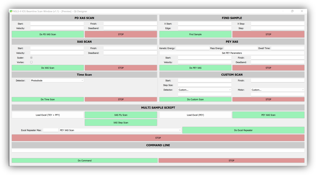 - Improves on the old method where users typed commands into a Linux terminal. The GUI has sections for running different scans and plotting functions, making it easier to train new users at the beamline.